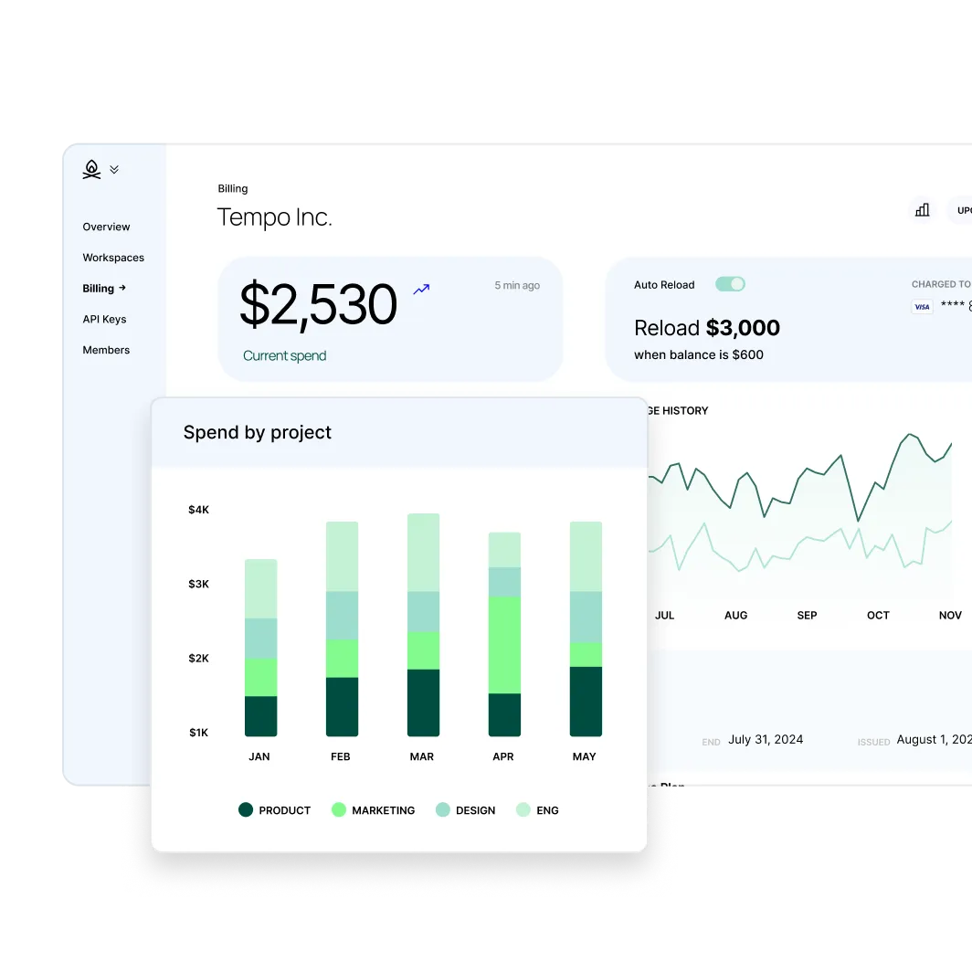 Use our APIs and robust alerting system to create transparent and actionable billing dashboards.